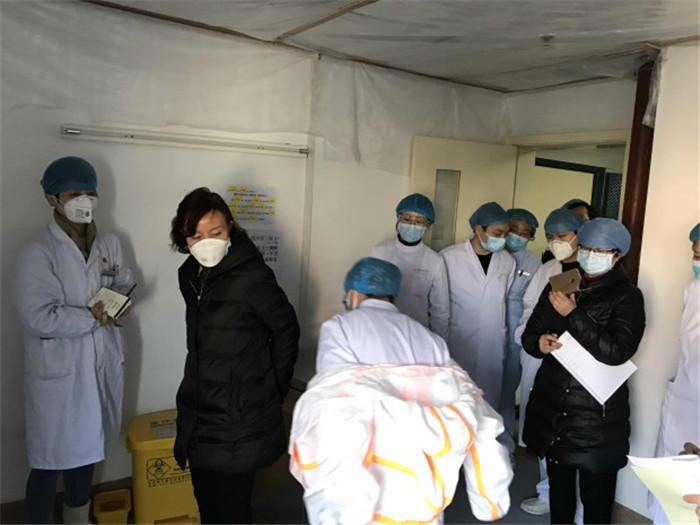 陈萍(左二)指导穿脱隔离衣